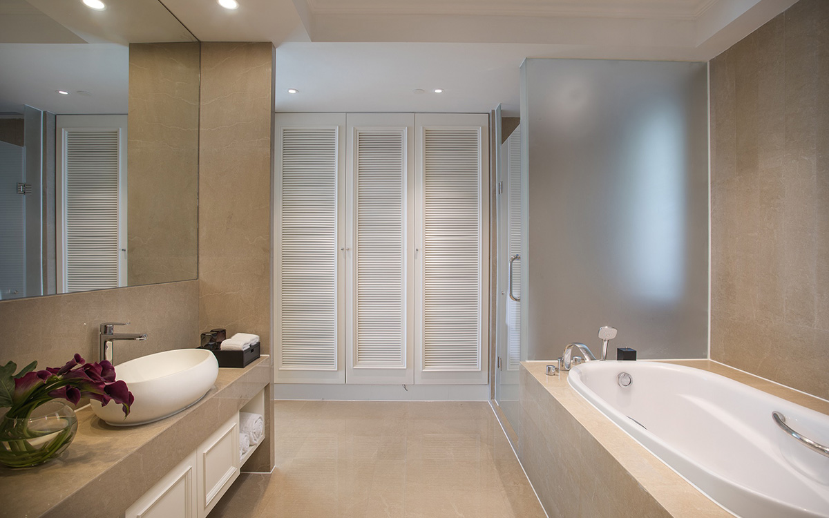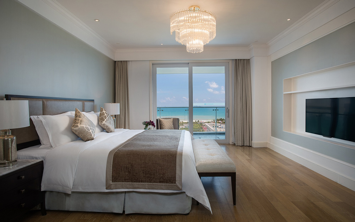 客房设计现代而时尚,色调优雅尊贵,每间套房均有观景阳台和落地窗,从不同角度尽享迷人的的南中国海景,在阳台即可观赏日出与夕阳之美,尽享日观海,夜踏浪的浪漫度假时光。