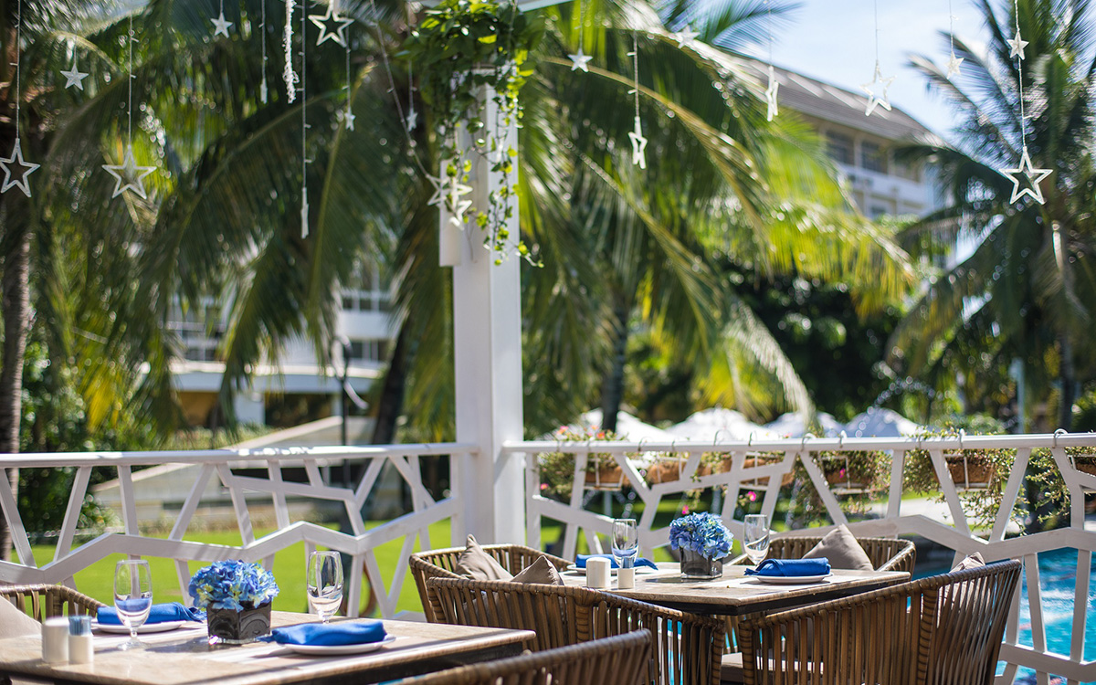 6个特色的餐饮场所为宾客打造丰富多样的国际美食体验,其中包括时尚优雅的大堂吧、汇聚国际美食的热那亚西餐厅、以粤菜、海鲜及海南当地美食为主的末蓝中餐厅、优雅而富有格调的汁味·红坊餐厅为贵宾们提供丰盛美味的阳光自助早餐,尊享悠然精致的海岛时光以及充满浪漫风情的池畔吧及烧烤吧。