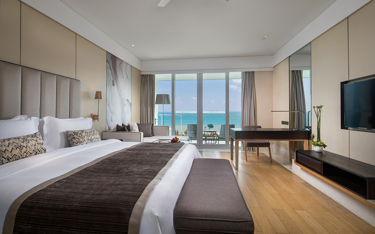 酒店拥有401间豪华客房及套房,68平米起的宜居空间。时尚而简约的现代风格、宽阔阳台和观海浴缸,让您枕海听涛,尊享温馨舒适的滨海度假时光。