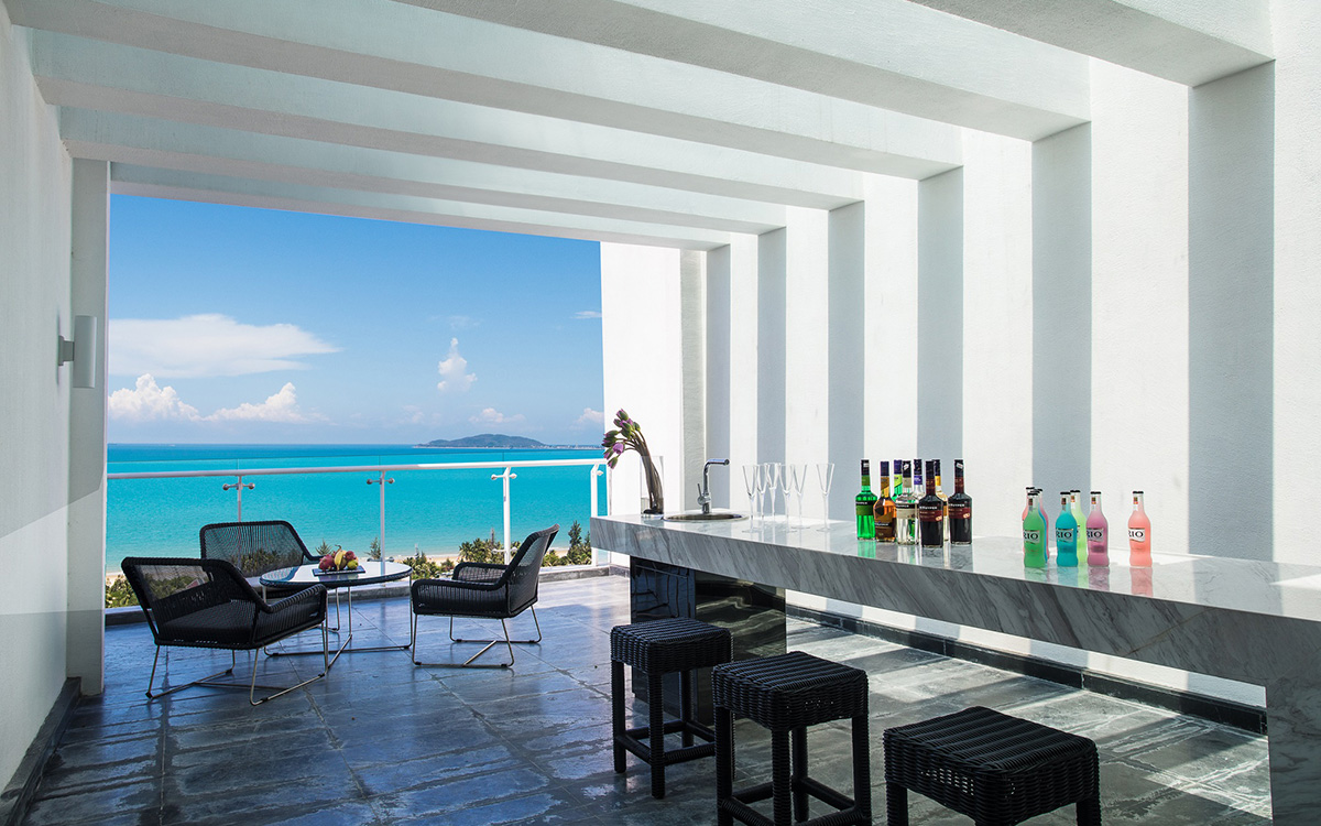 客房设计现代而时尚,色调优雅尊贵,每间套房均有观景阳台和落地窗,从不同角度尽享迷人的的南中国海景,在阳台即可观赏日出与夕阳之美,尽享日观海,夜踏浪的浪漫度假时光。