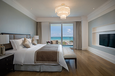 客房设计现代而时尚,色调优雅尊贵,每间套房均有宽阔观景阳台和落地窗,从不同角度尽享美丽的南中国海景,在阳台即可观赏日出与夕阳之美,尽享日观海,夜踏浪的浪漫度假时光。